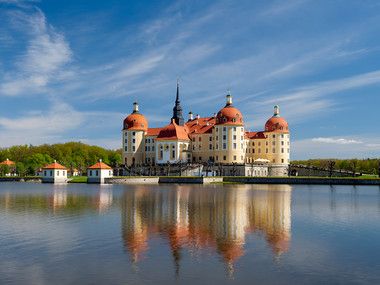 A baroque hunting lodge built for Augustus the Strong, located in the middle of a lake. Famous from the fairytale movie Three Wishes for Cinderella.